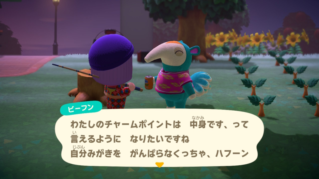 アップルとヘンリーが1時間くらい一緒に筋トレをしていた。意外な組み合わせ。というかまだこの島の住民同士が話しているところを見ていない。