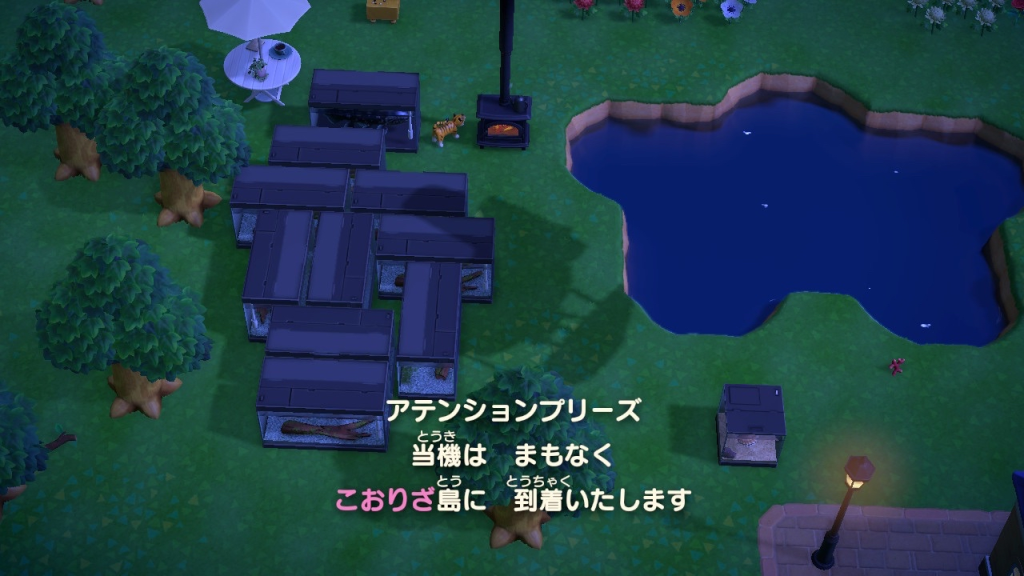 なんと売値が魚の最高額の15000ベルらしいので、売るのを待って、魚を高く買い取ってくれる人が来るまで待つことにする。うちの島のチャームポイント、星型の池の隣にドラドゾーンができた。非常に邪魔。